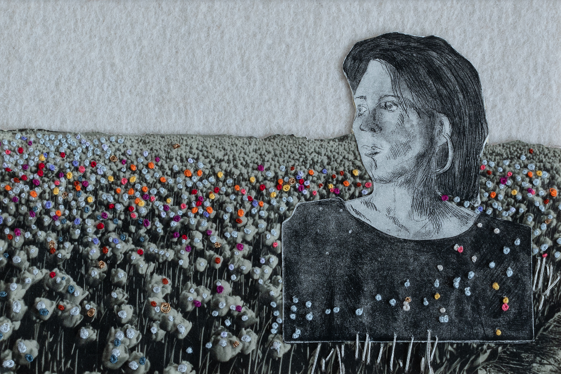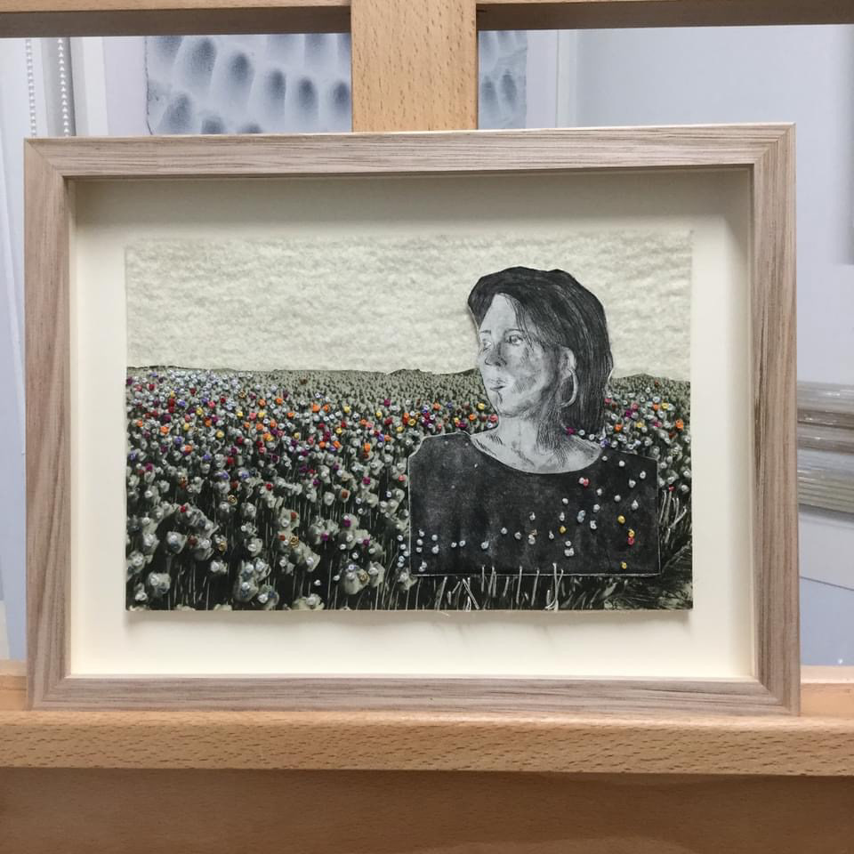 Hinke, hand embroidery on paper on felt, 2021 - Ain't the Archies Group Exhibition @ Timeless Textiles, Newcastle East